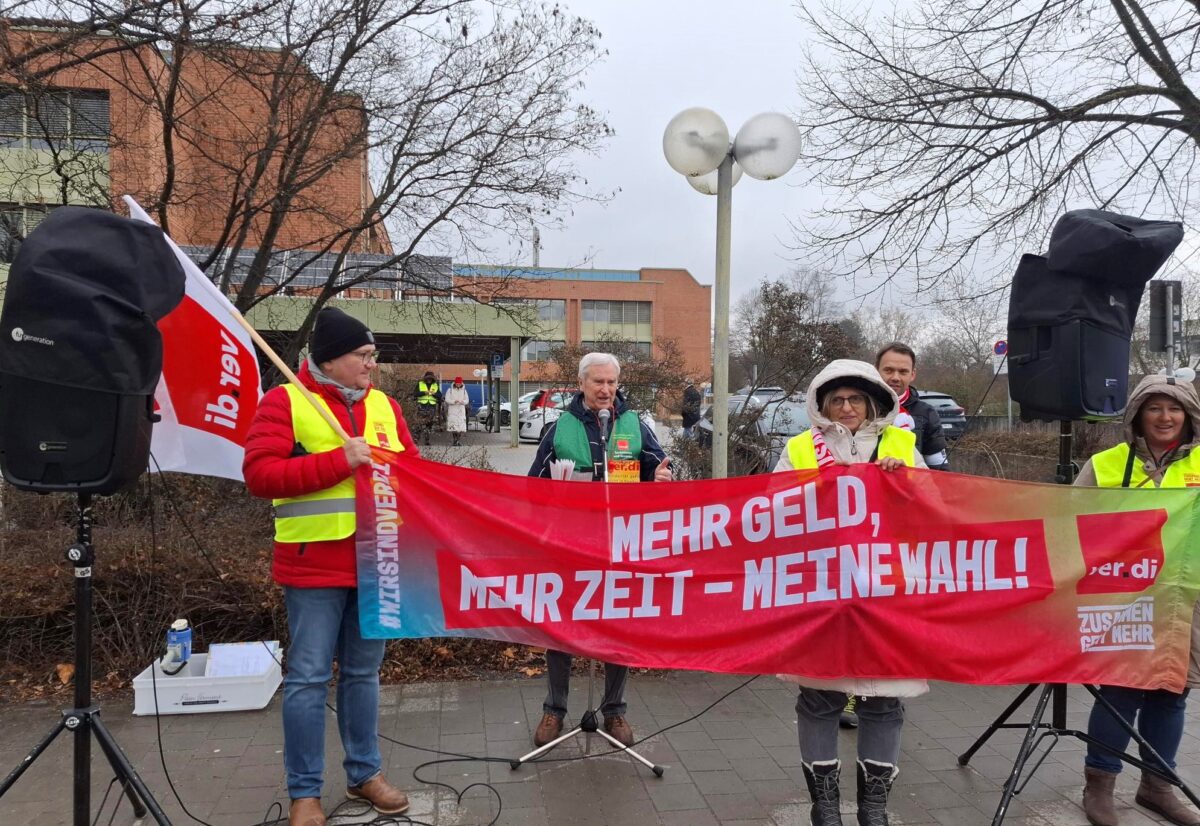 Die Forderungen nach besseren Arbeitsbedingungen und Entlastung werden lautstark geäußert “Wir sind jeden Tag für die Menschen in der Region im Einsatz”, betont Roland Gleißner, Gesamtbetriebsratsvorsitzender der Kliniken Nordoberpfalz AG, die Bedeutung von gutem Personal im Pflegebereich. Silke Tanner, Vertrauensleutesprecherin von ver.di, hebt die Motivation und die tragende Rolle der Beschäftigten in den Arbeitsagenturen und Jobcentern hervor.