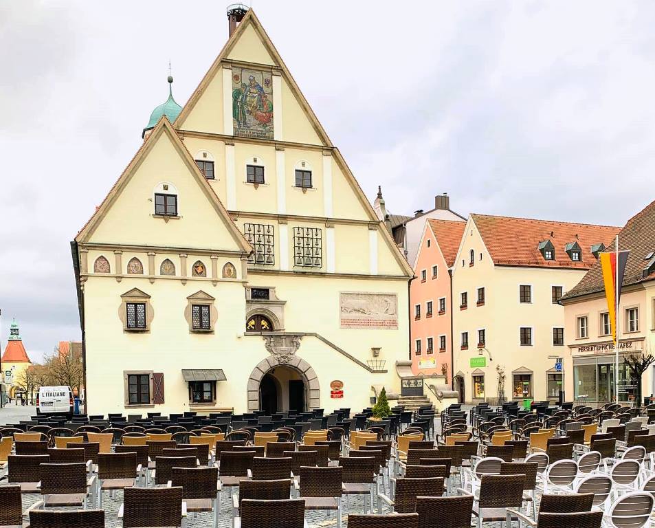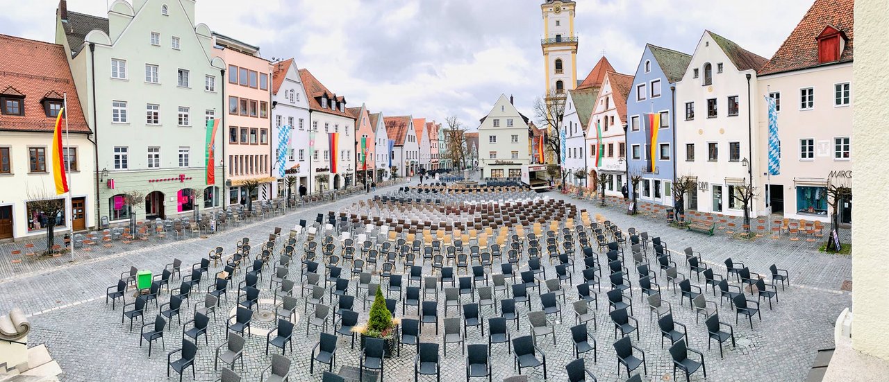 Rund 1.300 Stühle stehen seit heute in der Weidener Altstadt – vor Geschäften, Restaurants und Cafés. Es ist ein “stiller Protest”.