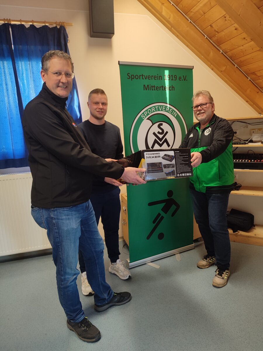 Die Freude beim SV Mitterteich ist groß: “Wir möchten uns am heutigen Tag bei der Firma Performing Databases und seinen beiden Geschäftsführern Martin Klier und Benedikt Nahlovsky recht herzlich für die neue Musikanlage im Vereinsheim bedanken”, sagt Gerhard Greim, der 2. Vorsitzende des Vereins. Dieses Engagement zeigt, wie stark der Zusammenhalt innerhalb der Gemeinschaft ist und wie wichtig die Unterstützung durch lokale Unternehmen für Vereine sein kann.