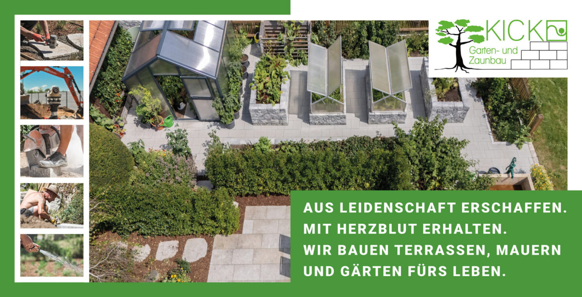 Die komplette Umsetzung wurde von Kick Gartenbau („Wir geben Deinem Garten den letzten Kick!“) durchgeführt und war innerhalb weniger Wochen abgeschlossen. Die Handwerker haben ihre Arbeit absolut professionell erledigt und die schöne Zeit mit ihnen, in der sie unseren Traum Stück für Stück verwirklicht haben, auch wenn das Wetter nicht immer mitspielte, wird uns in unvergesslicher Erinnerung bleiben.