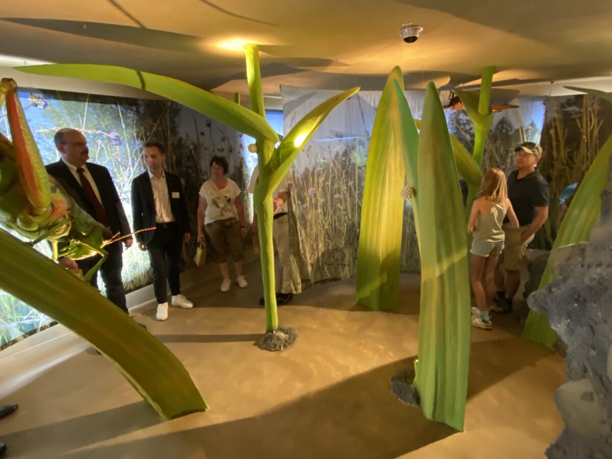 Äußerst beeindruckend war das Interesse an den stets ausgebuchten Führungen durch das „Haus der Biodiversität“, um die Besonderheiten der Architektur, die Ausstellung „Was ist Biodiversität?“ und die neue innovative Technik kombiniert mit traditionellen Bauweisen kennen zu lernen. So konnte der Besucher bei einer Ausstellung als kleines Insekt zwischen den Halmen eine Wiese entdecken. Mit Biologin Mathilde Müllner, Projektmanagerin Nathalie Ingerl, Katharina Haas von der Ökomodellregion und Kilian Bindl, vom Amt für Ländliche Entwicklung, waren stets absolute Fachkräfte vor Ort.