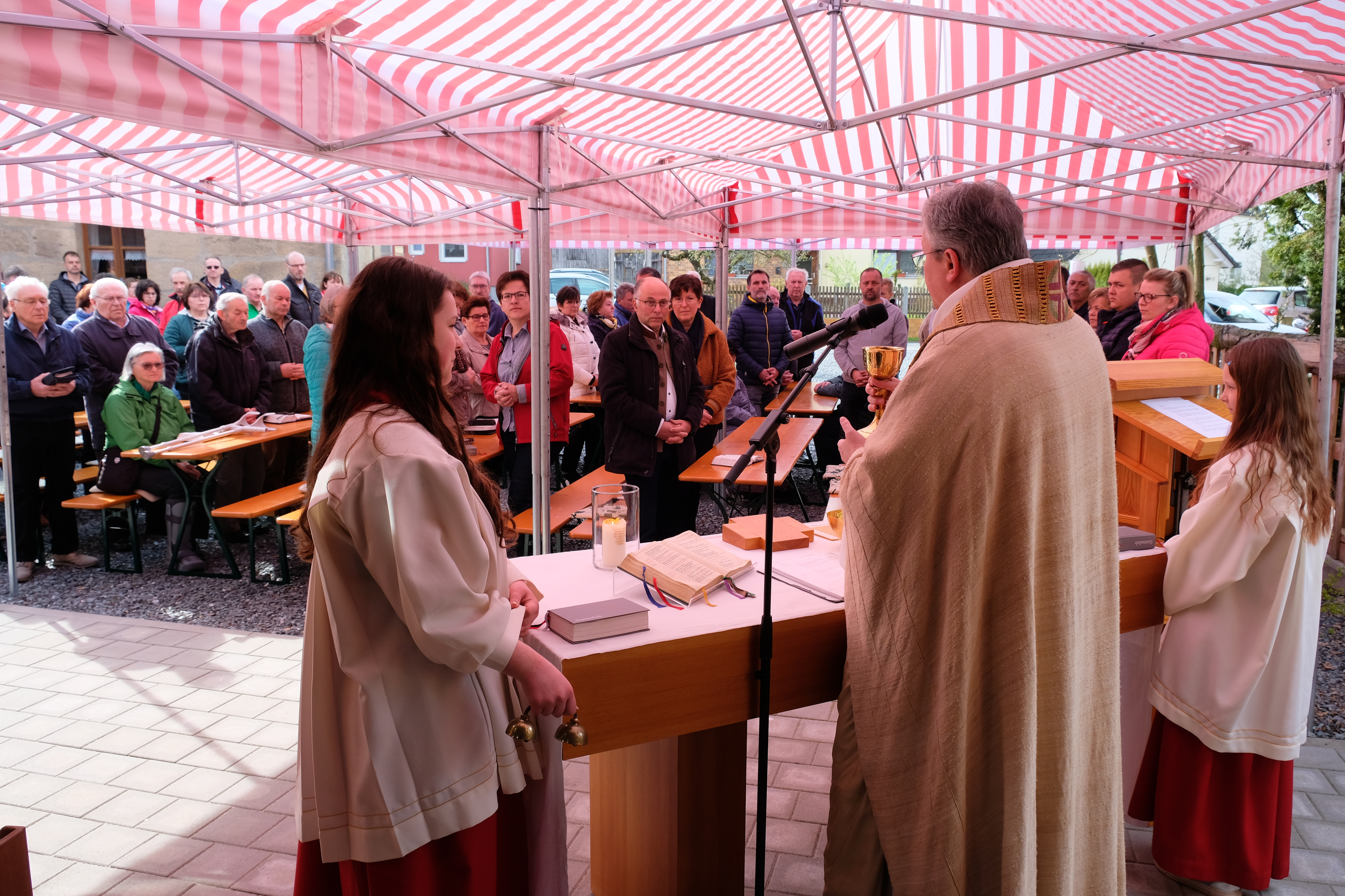 Der Feiertag begann standesgemäß mit einem Festgottesdienst zwischen Hirthaus und dem neuen Gebäude der Dorfkultur. Schon zu Beginn der Festmesse richtete Ortspfarrer Prior Adrian Kugler einen Blick auf die Patronin Bayerns. „Menschen dürfen zu Maria kommen und bei ihr Zuflucht finden“!