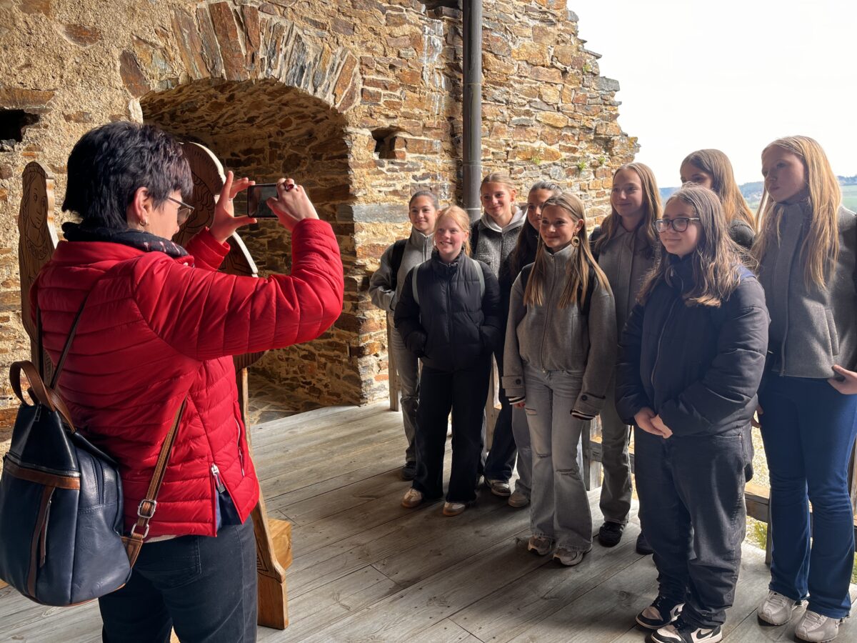 Unsere jüngsten Tschechisch-Schüler in der siebten Jahrgangsstufe unternahmen in diesem Rahmen eine Fahrt zur malerisch gelegenen Burg Velhartice, in der einst die Kronjuwelen Tschechiens gelagert worden waren. In einer kurzweiligen zweisprachigen Führung ging es über drei Stockwerke und eine respekteinflößende Brücke in den Hungerturm, wo in den Zeiten der Religionskriege Menschen davon überzeugt werden sollten, zum anderen Glauben zu wechseln.