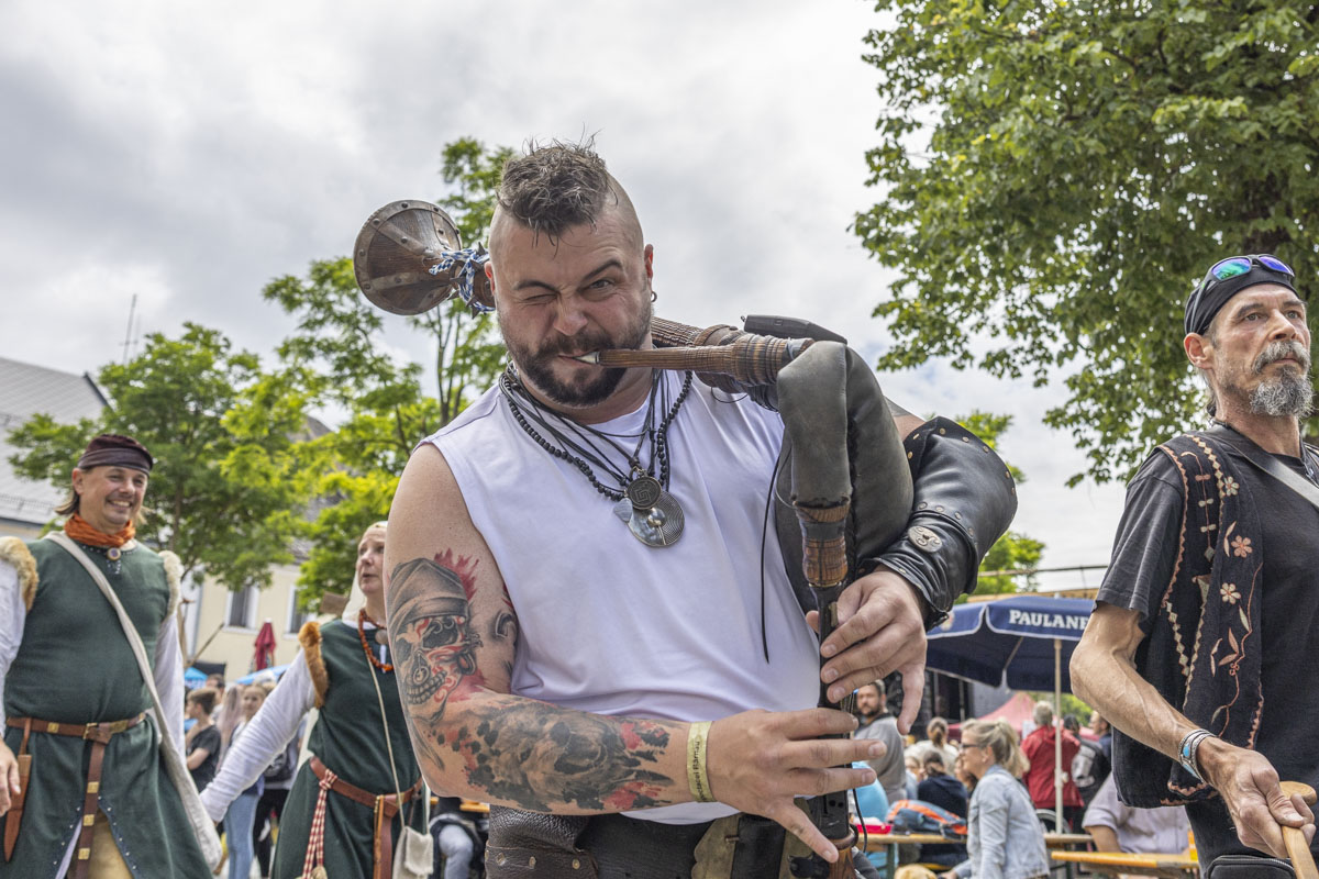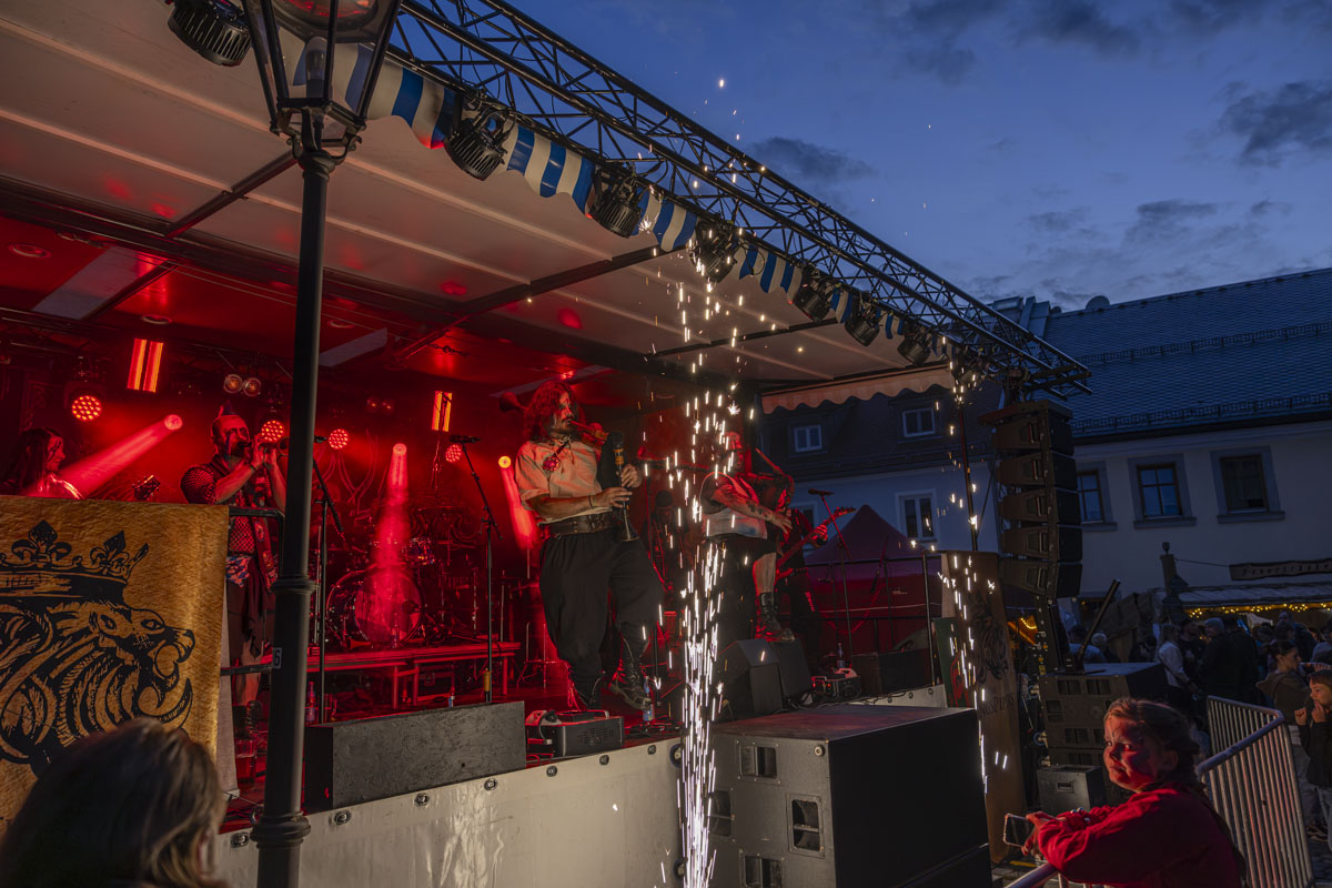 Mit den Begrüßungsworten, “Trinket den köstlichen Met und labet Euch an erlesenen Speisen”, hatte die Stadt Bärnau gewiss nicht zu viel versprochen. Mit leckerem Kesselfleisch und Dotsch, Gyros, Landknechtfleisch, Bratwürste, Wildgulasch, Pommes, Kartoffelspiralen, Fladen, Waffeln, Kaffee und Kuchen sowie Met, Bier und Wein blieben auch für Feinschmecker keine Wünsche offen.