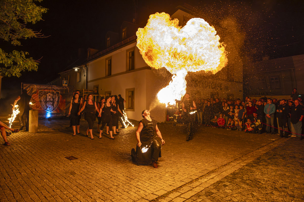 Die Höhepunkte des Spectaculums waren der große historische Festzug durch die Bärnauer Altstadt mit allen Rittergruppen, Gewandeten, Gauklern und Musikgruppen sowie die Feuershow am Samstagabend auf dem Marktplatz. Für die musikalische Unterhaltung sorgten an diesem Wochenende viele Musikgruppen aus Deutschland, Ungarn und Tschechien: “The KingsPipers” aus Berlin, “Amici Musicae Antiquea” aus Pirk, “Holloenek Hungarica Regizende Együttes” aus Ungarn, “Rammeschucksn” aus Floß und Gutta und Benedictus aus Tschechien. Zusätzliche Unterhaltung boten dazu noch “Gaukler Sepp”, die Tanzgruppe “Spiriti Affini”, “Flip Flops Akrobatistik”, Akrobatik Eisenbarth”, “Medicus Hubertus”, Schaukampftruppe “Zlaty Gral” aus Tachov und “Der Kistler”.