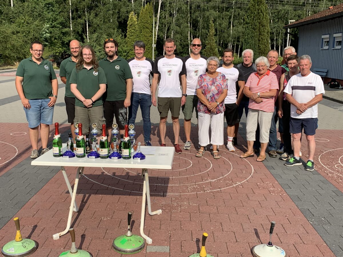 Werner Schumacher begrüßte die vier Hobbyteams. Mit einer Gedenkminute erinnerte er an Karl Götz. Nach zwei Stunden stand mit dem Team der Gemeinde Altenstadt mit 8 : 0 Punkten der Sieger fest. Für die Gemeinde traten Bürgermeister Ernst Schicketanz, Bernhard Pscheidt, Andreas Greiner und Thomas Weiß an. Auf den Plätzen zwei und drei folgten die punktgleichen Mannschaften der Reha-Vitalsportgruppe 2 und 1 des SV Altenstadt. Den vierten Platz belegte der Burschenverein.