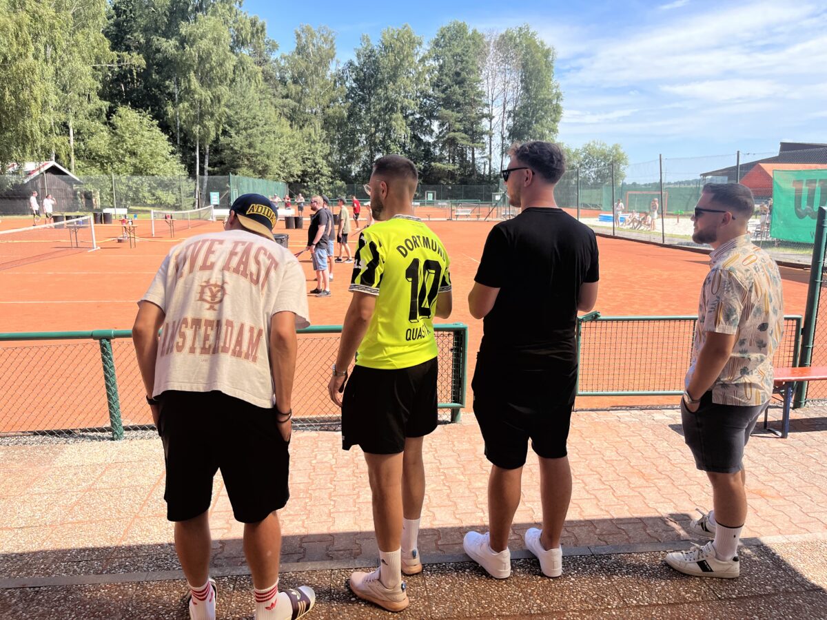 Nach der Gruppenphase – sechs Gruppen à vier Teams – qualifizierten sich die jeweiligen Gruppensieger sowie die beiden besten Gruppenzweiten für das Viertelfinale. Dort hieß es dann: Do or Die. Das meiste Zielwasser hatten an diesem Tag die Hobbygärtner mit den TC-Eschenbach-Mitgliedern Jonathan Ott und Paul Schmidt sowie die Komaknaller um Daniel Wiesend und Thorsten Schraml. Im direkten Duell bewiesen jedoch die Komaknaller, dass man auch ohne Tenniserfahrung den großen Pokal holen kann – und sicherten sich den Turniersieg.