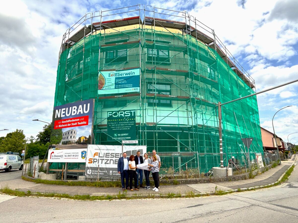 „Wir liegen voll im Zeitplan“, so der Teublitzer Bauunternehmer Georg Ehrenreich. Der Innenausbau verlaufe bislang planmäßig. „Schon bald können Passanten auch im Erdgeschoss die künftige Nutzung als Bücherei deutlich wahrnehmen“, sagt Ehrenreich und weiter: „Für Teublitz entsteht hier ein Ort mit echtem Mehrwert für die Bevölkerung.“
