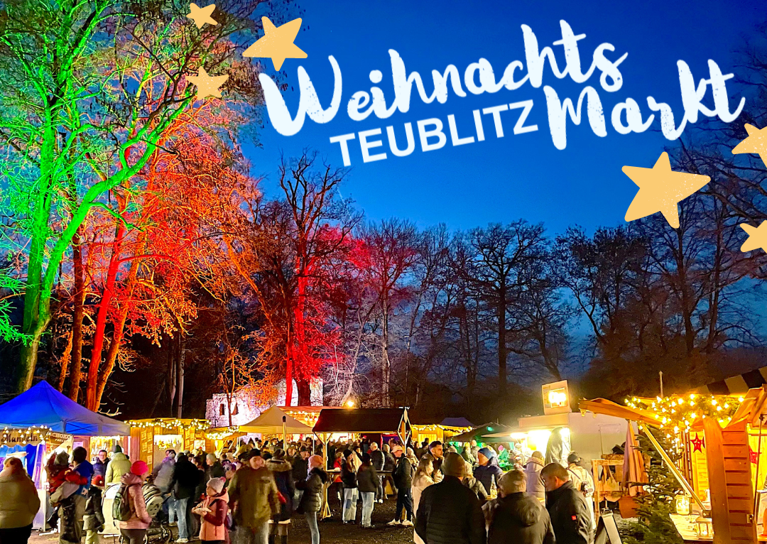 Der Teublitzer Weihnachtsmarkt lockt jedes Jahr zahlreiche Gäste aus der Region und darüber hinaus. Der Stadtpark verwandelt sich in eine beleuchtete Budenstadt, die mit ihrem Bühnen- und Rahmenprogramm für Groß und Klein gleichermaßen attraktiv ist.