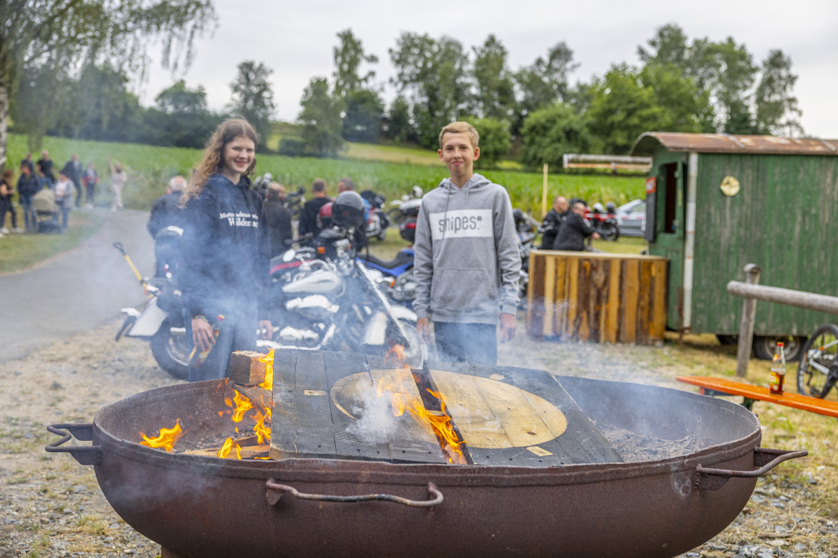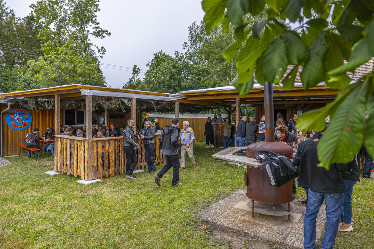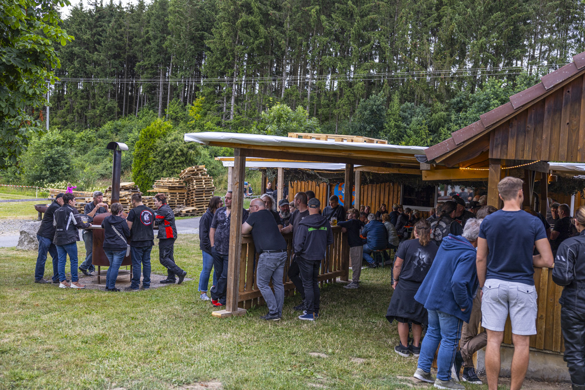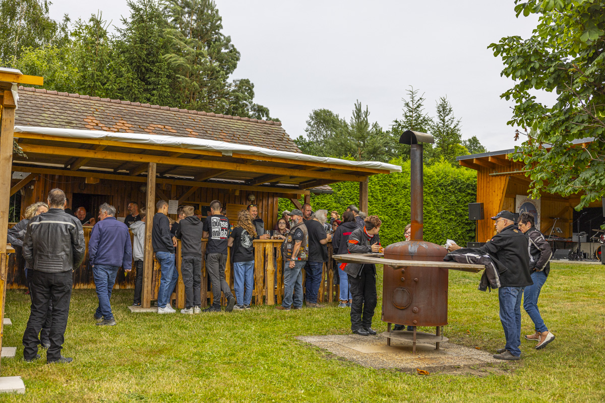 Nach einem Begrüßungsschnäpschen konnten die Gäste der Livemusik von der Band “Timeless” lauschen, das Grillfleisch und den Gerstensaft genießen und ihr Zelt neben dem Vereinsheim aufbauen. Weil einige Biker eine weite Anreise auf sich genommen hatten und natürlich auch ordentlich feiern wollten, wurde dieses Angebot dankbar angenommen.