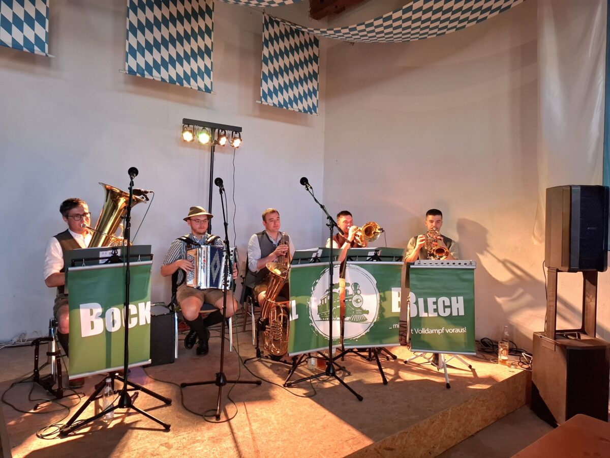 Für den musikalischen Höhepunkt des Abends zeichnete die Gruppe „Bockl-Blech“ aus Waidhaus verantwortlich. Bockl-Blech, eine Erinnerung an die legendäre Bockldampflok, wurde im Juni 2019 gegründet, wobei der Name von einem Leser der Tageszeitung stammte. „Die vielen Namensvorschläge für die Musikgruppe kamen nach dem Aufruf im Neuen Tag per Postkarte und Brief und der Gewinner durfte sich über ein Ständchen vor der Haustür freuen“, erinnerte sich Bauriedl. Seither geht es mit Volldampf voraus und die fünf Vollblutmusiker begeisterten mit schwungvoller Blasmusik und Schunkelrunden ihr Publikum. Unter der musikalischen Leitung von Philipp Bauriedl und dem Moderator Ludwig Greß präsentierten die Vollblutmusiker Thomas Bayer, Jonas Schmid und Tobias Fürtsch eindrucksvoll das seit 2019 abwechslungsreiche Repertoire von alpenländischen bis hin zu altbayerischen und böhmischen Klängen. Stücke wie „Griass di Gott Frau Wirtin“ oder „Zwei lustige Brüder“ sorgten für ausgelassene Stimmung und unterstrichen eindrucksvoll das Motto „mit Volldampf voraus“ der Gruppe.