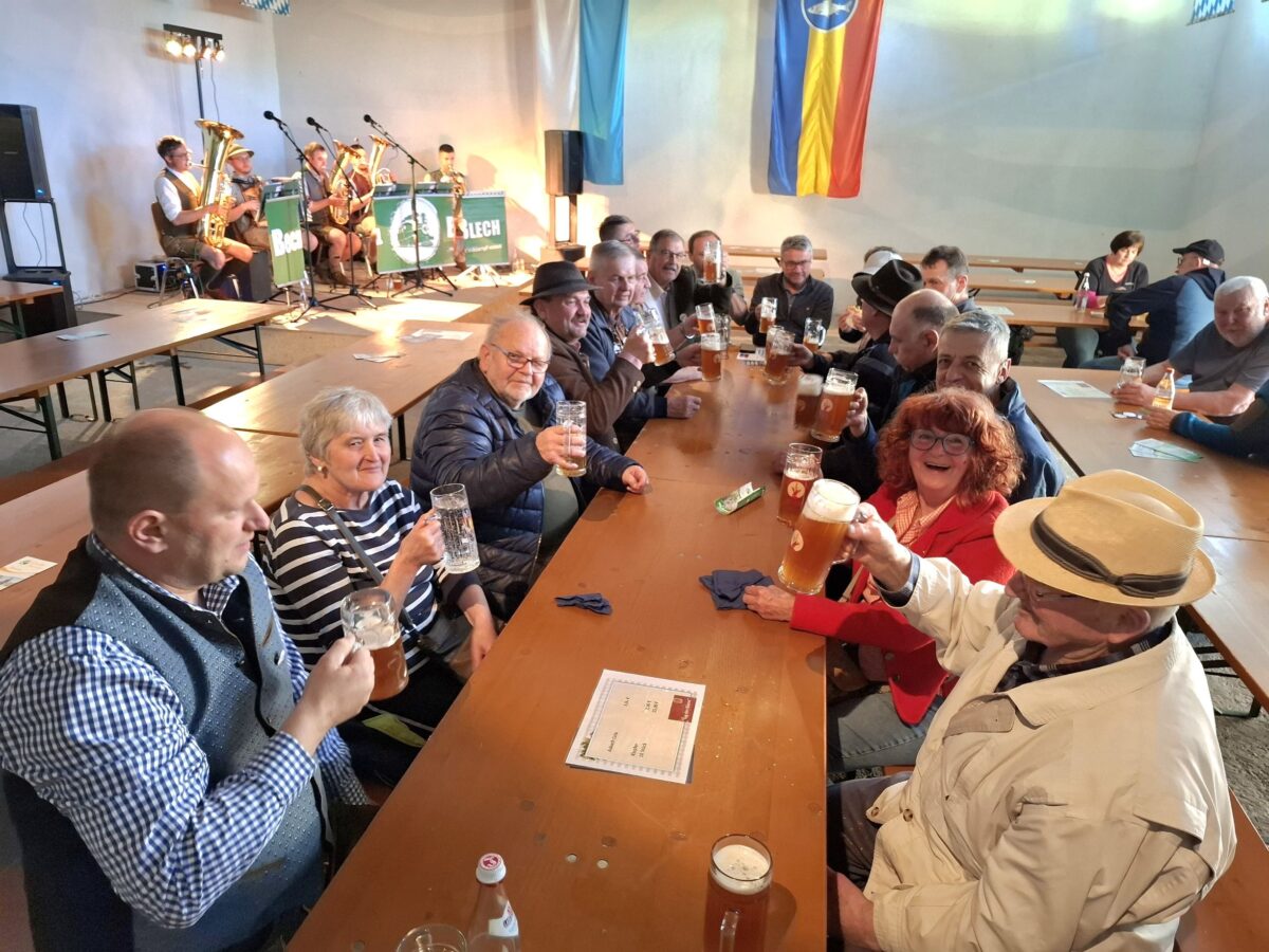 Das gemeinsame Fest ist längst zu einer festen Größe im Veranstaltungskalender der Region geworden. Der sonnige Frühlingstag bot im Freien direkt neben dem kleinen Hopfengarten ideale Bedingungen für gesellige Stunden. Die liebevoll gestalteten Sitzgelegenheiten luden zum Verweilen ein und boten den perfekten Rahmen für Begegnungen unter Freunden und Bekannten. Als es am Abend kühler wurde, nahmen die Gäste die temperierte Festhalle dankbar an.