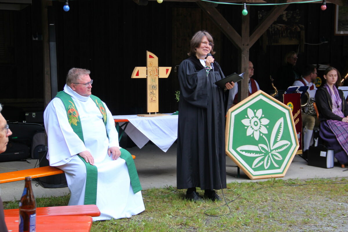 Besondere Ehre wurde dem Verein zuteil, als der Patenverein FGV Weidenberg unter der Leitung von Günther Dörfler einen 100-Liter-Gutschein überreichte und seine neu gegründete Volkstanzgruppe präsentierte. Zum krönenden Abschluss des Jubiläumsfestes fand eine ökumenische Andacht statt. In der sowohl Dank ausgesprochen als auch um göttlichen Segen für die Zukunft gebeten wurde.