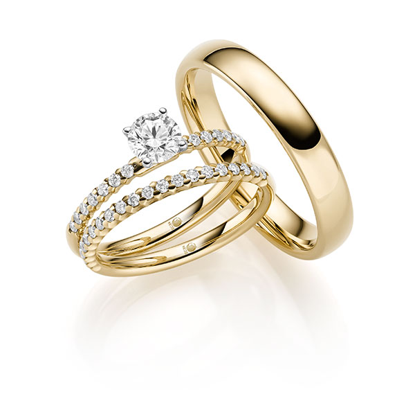 Als Trend zeichnet sich augenblicklich ganz deutlich Gelbgold ab, das Altbewährte lebt wieder auf. Neu ist, dass der “Klassiker” mit farbigen Steinen kombiniert wird und es nicht immer bei einem schlichten Brillanten bleibt. Schmale Ringe sind allerdings nach wie vor sehr beliebt und werden immer noch gerne mit einem Vorsteckring oder dem Verlobungsring kombiniert.