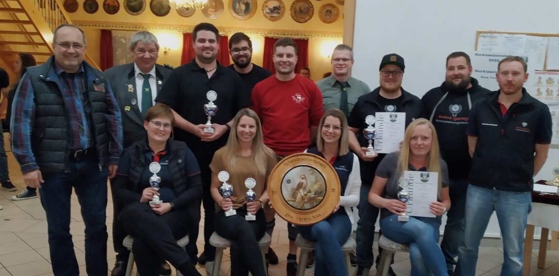 Bei den Einzelwertungen machten Katharina Eckl (883 Punkte), Katharina Breitschaft (821 Punkte) und Andreas Breitschaft (960 Punkte) das Rennen. Die Marktmeisterscheibe räumte Verena Kick von den Kleinschwandner „Knallerfrauen“ mit 9,8 Ringen und einem Teiler von 301,4 ab.