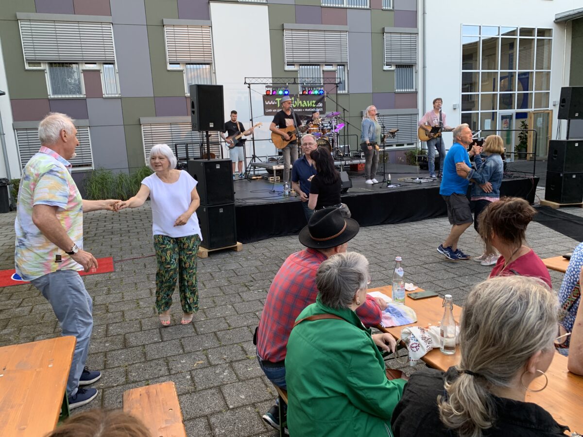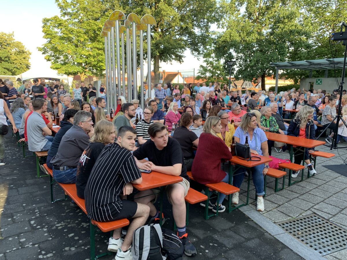 Der immer wieder, zwischen den Lieder aufkommende, Applaus dankte der Band für ihre Darbietungen. Über den ganzen Platz sah man singende, tanzende und wippende Besucher. Nach mehr als zwei Stunden waren sich die Serenadenfreunde einig, einen tollen Abend erlebt zu heben. Der Partyservice Richtmann sorgte fürs leibliche Wohl. Bei den Festdamen der freiwilligen Feuer gab es Wein und Aperol.