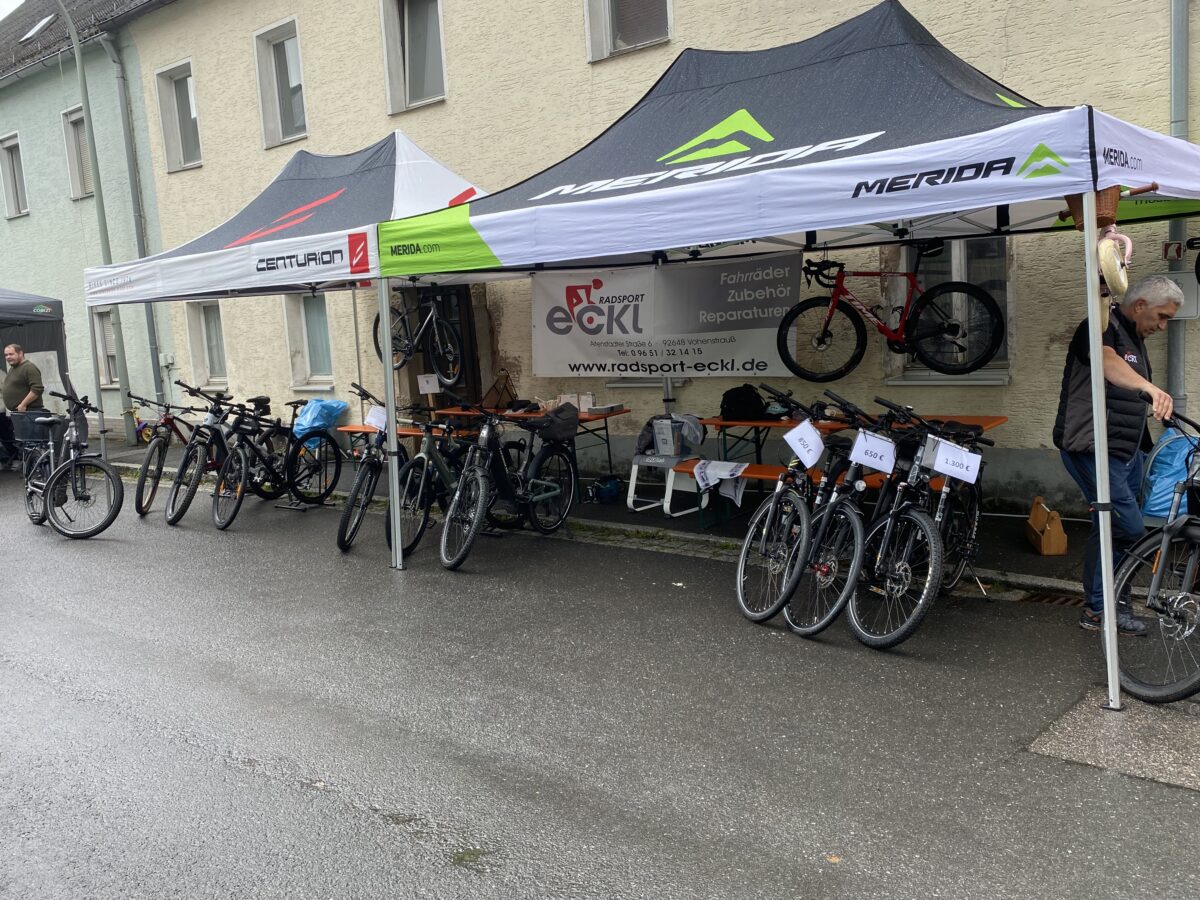 An den Ständen mit Anbietern aus der gesamten Region konnten sich die vielen Besucher informieren und mit meist selbst produzierten und hergestellten Waren eindecken. Wer noch keinen Appetit hatte, bekam ihn spätestens beim Rundgang durch die rund um die Pfarrkirche aufgebauten Stände und konnte sich an den zahlreichen Essenständen verköstigen. Kulinarische und biologische Köstlichkeiten vom Rotvieh aus der Oberpfalz, Spezialitäten vom Lamm oder ein Veggieburger waren immer gefragt. Leckerer „Kirwakuchen“ und „Küchln“ mit einer Tasse Kaffee rundete die Gaumenfreuden ab. Regionale Streuobstprodukte sorgten für einen guten Magen. Auch die Tännesberger Gastronomen und Lebensmittelhandwerker hatten für die Besucher geöffnet. Neben den regionalen Köstlichkeiten konnten handwerkliche Produkte wie Filzarbeiten, Seifen, Kreatives aus Holz, Stoff und Wolle sowie Schmuck und Kunstgegenstände erworben werden. Für sportlich ambitionierte waren nicht nur E-Bikes aufgebaut.