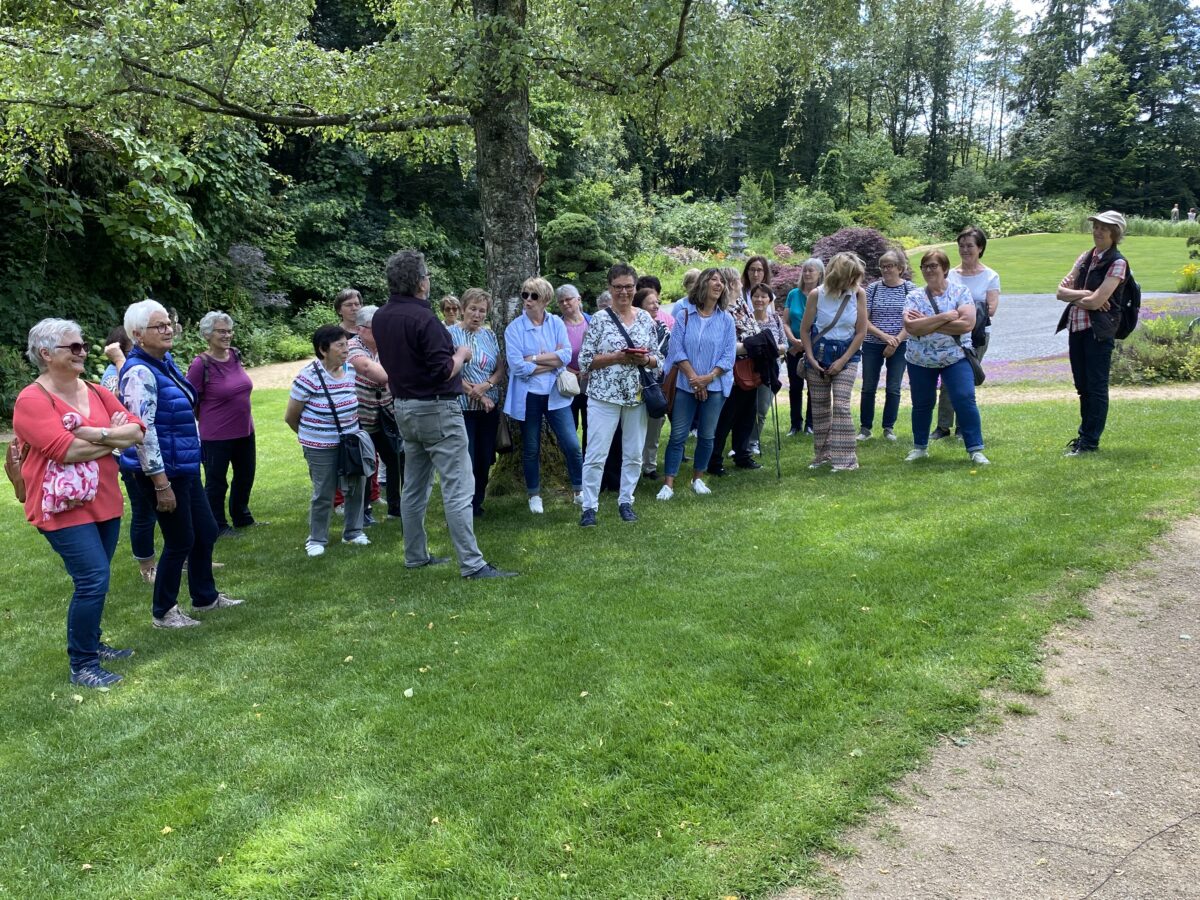 Für den Nachmittag war der Nepal-Himalaya-Park bei Wiesent, ein Ort an dem sich Kultur und Natur auf das Innigste verbindet, angesagt. Vorher stärkte sich die Gruppe mit einer herzhaften und süßen Brotzeit am Bus. Bei einer Führung durch den Garten, der nach Lebensbereichen angelegt ist, erfuhren die Teilnehmer, dass inzwischen mehr als 6200 verschiedene Pflanzenarten wachsen. Viel zu kurz war die Zeit, um die Blütenpracht zu bewundern oder im Pavillon zu meditieren.