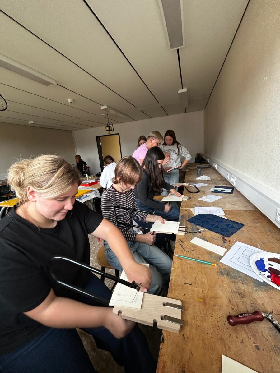 Im weiteren Verlauf der Woche drehte sich vieles um das Thema Fotografie: Gemeinsam erkundeten die deutschen und polnischen Schüler Eschenbach auf der Suche nach besonderen Türen und Toren. Ihre schönsten Motive fassten sie anschließend zu einer eindrucksvollen Collage zusammen. Auch handwerkliches Geschick war gefragt – beim Verzieren von Lebkuchen in Türform und beim Aussägen und Bemalen kleiner Holztüren entstanden viele liebevoll gestaltete Kunstwerke.