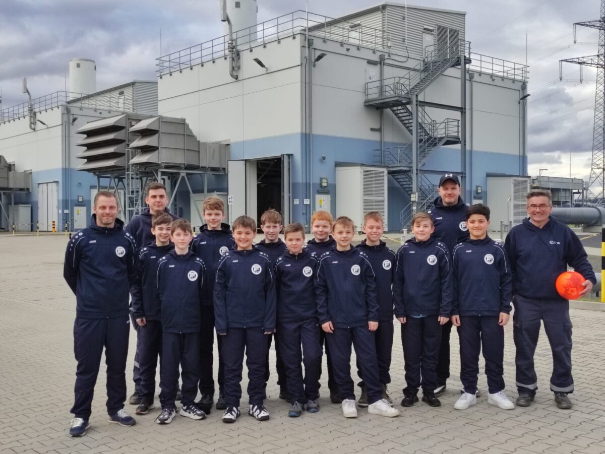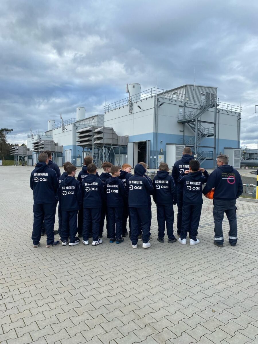 Reinhard Forster begrüßte die Spieler in der großen Anlage. Mit einem kurzweiligen und interessanten Vortrag bekamen die Gäste einen Einblick in die wichtigsten Funktionen der Station. In einer kurzen Pause wurde die Mannschaft des Trainerduos Martin Oppitz und Stefan Benker mit einem neuen Präsentationsanzug, gesponsort von OGE, überrascht.