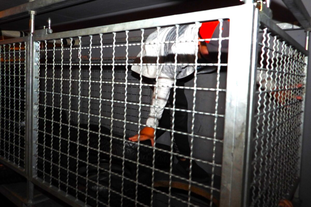 Ein absolutes Muss war, wie jedes Jahr, der Besuch der Atemschutz-Übungsstrecke. In dem Parcours waren etliche Hindernisse zu überwinden, zum Beispiel durch ein 50 cm dickes und über vier Meter langes Metallrohr zu kriechen oder über Reifenstapel zu klettern. Das alles geschah in einem engen Gitterkanal.