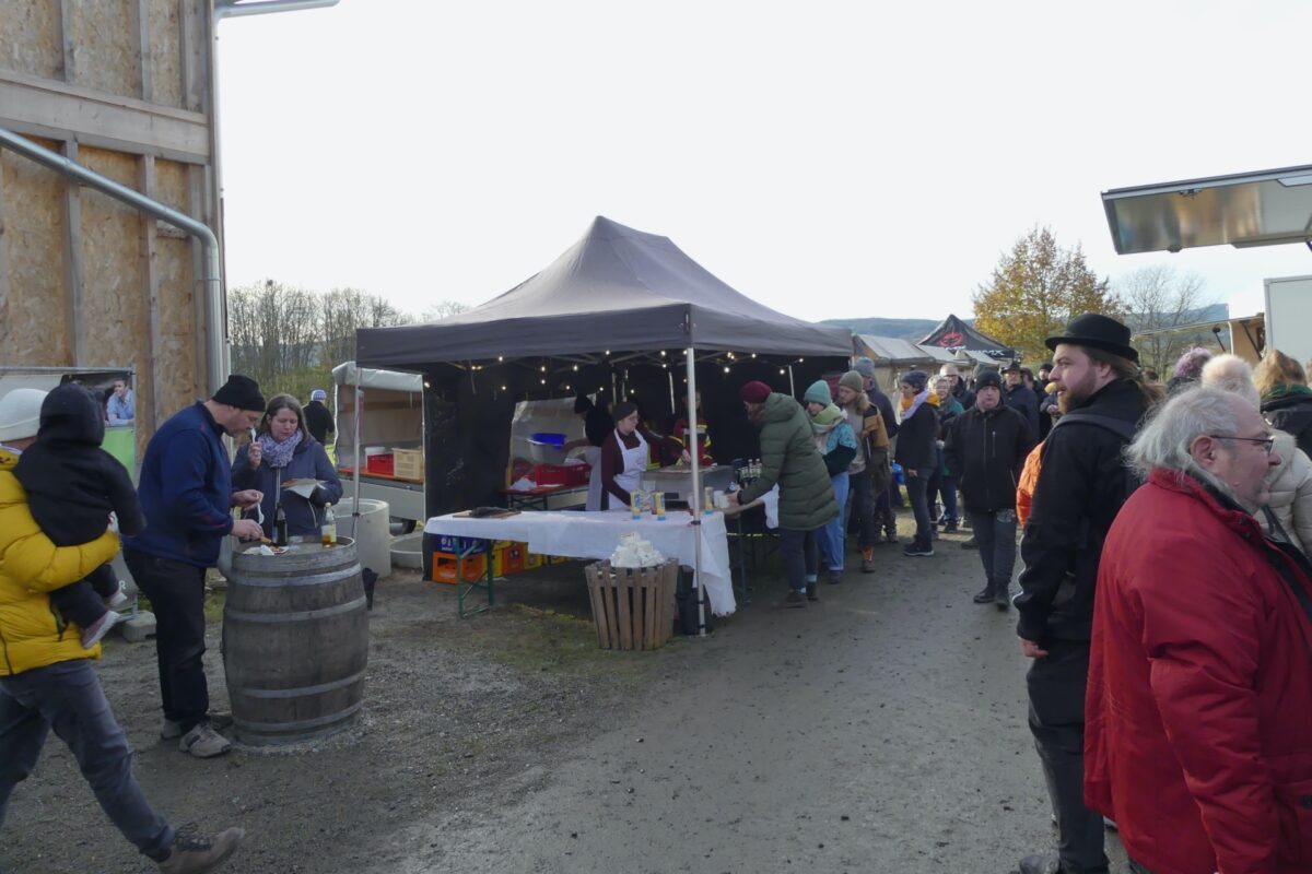 Als die Autorin dieses Berichts am Sonntag kurz vor 14 Uhr am Oberpfälzer Freilandmuseum oberhalb von Neusath ankam, waren alle Parkplätze belegt, und sie wurde von der Feuerwehr zum Zaun am untersten Bereich des Geländes dirigiert. Als sie kurz vor 16 Uhr das Museum wieder verließ, waren zwar viele Parkplätze wieder frei, dafür aber der Straßenrand bis hinunter ins Dorf vollgeparkt. Eine Rückfrage ergab, dass insgesamt 2800 Besucherinnen und Besucher dagewesen waren. Da war es kein Wunder, dass er mit dem Verlauf des Wintermarktes sehr zufrieden war.