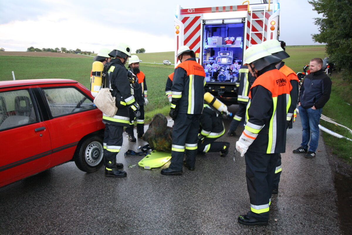 Nichts zu retten gab es allerdings bei dem ersten „Opfer“: Auch ein Defibrillator hätte in dem hölzernen „Kameraden“ keine Lebensgeister mehr zu wecken vermocht. Dem Lob Gerhard Wiesents für die disziplinierte Arbeit der drei bestens geschulten Wehren schloss sich zweiter Bürgermeister Josef Marzi an und lud alle Übungsteilnehmer im Namen der Gemeinde zu einer Brotzeit im Feuerwehrhaus ein.