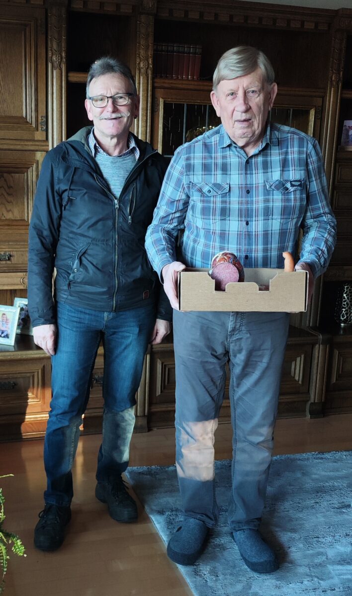 Den Wurstdackel, den traditionell Gerlinde Müller zusammen stellte, übergab Vorsitzender Ludwig Eger an seinen Waldthurner Siedlerfreund Manfred Kuhn (47 Punkte).