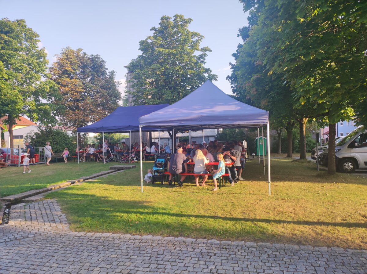 Ehrengast war, wie jedes Jahr, der Landtagsabgeordnete Stefan Oetzinger. Vom Nachbarortsverband Oberwildenau reiste eine Gruppe per Fahrrad, unter Führung ihres Ortsvorsitzenden Roland Rauch, zu den Neudorfer Freunden. Der Duft der Original Amberger Bergfest Bratwürste zog durch ganz Neudorf, viele folgten der Herkunft des Duftes. Die Männer am Grill, Andreas Lorenz und Philipp Guber, konnten schnell melden, alles ausverkauft. Eines war aber ausreichend vorhanden, die kühlen Getränke.
