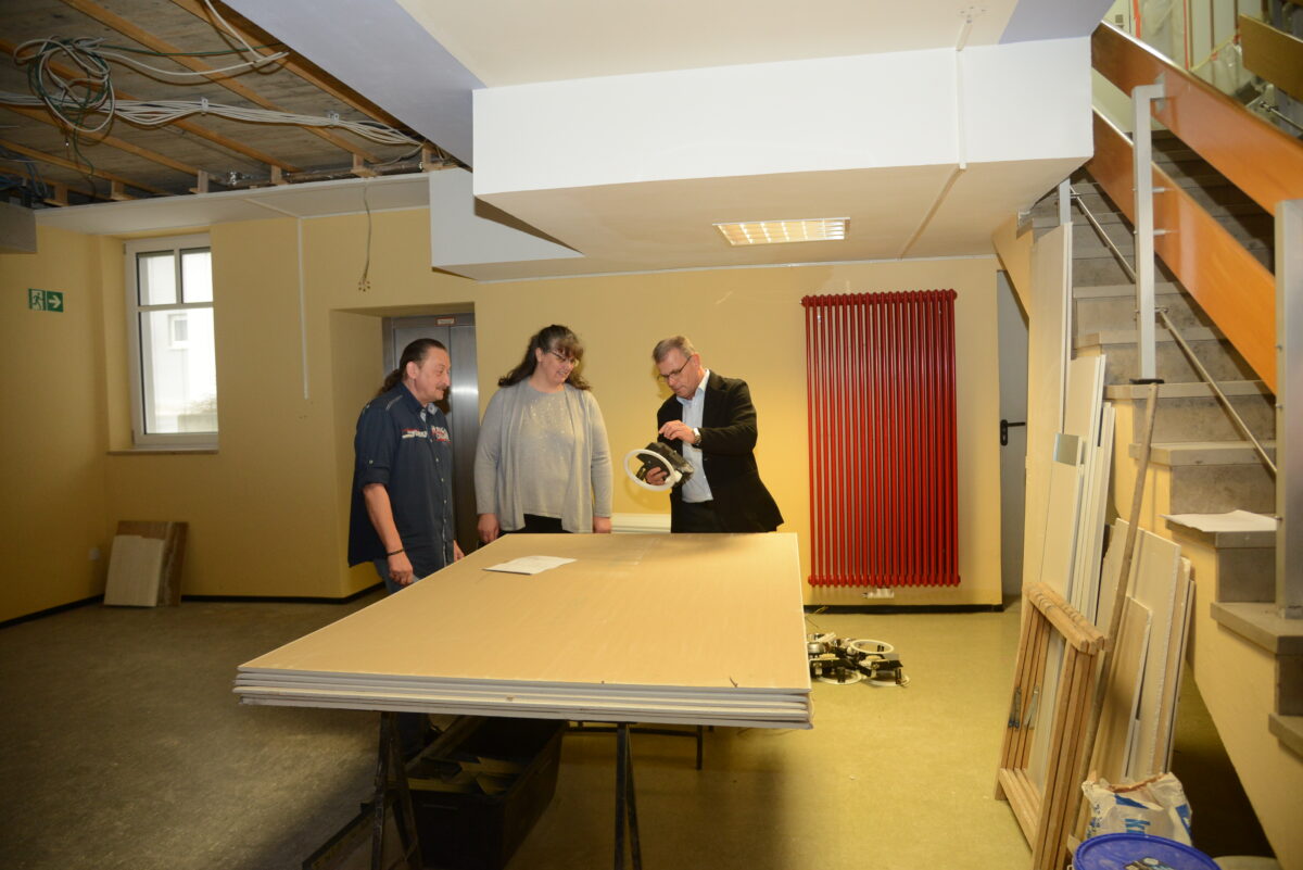 „Die größten Arbeiten im Keller betreffen sozusagen die Zukunft“, berichtet der Bautechniker. Die Verlegung großer Kabelschächte, an der Kellerdecke sichtbar, ermögliche künftig ohne großen Aufwand Kabel für Internet und ähnlichem zu verlegen. „Damit wird die Infrastruktur des Gebäudes wesentlich verbessert“, wirft der Geschäftsleiter ein. Die Aufteilung in zwei Bauabschnitte bedeute auch, dass zwei unterschiedliche Firmen tätig sein werden, erklärt Thomas Treml. Die Baumaßnahme im Keller könne direkt vergeben werden, die Arbeiten im Erdgeschoss müssen ausgeschrieben werden.