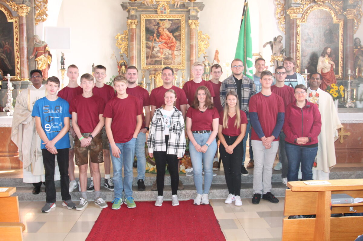 Die vom Pfarrer gesegneten KLJB-Abzeichen erhielten: Verena Ach, Sandra Bayer, Jakob Bergler, Alexander Bock, Jennifer Bock, Sofie Frischholz, Elias Glaser, Lukas Helgert, Carolin Janker, Christian Janker, Matthias Kindl, Magdalena Kraus, Daniel Moll, David Reber, Johannes Reber, Kristina Scheibl, Michael Scheibl, Johannes Wittmann, Simon Wittmann, Magdalena Woppmann und Andreas Wüst.