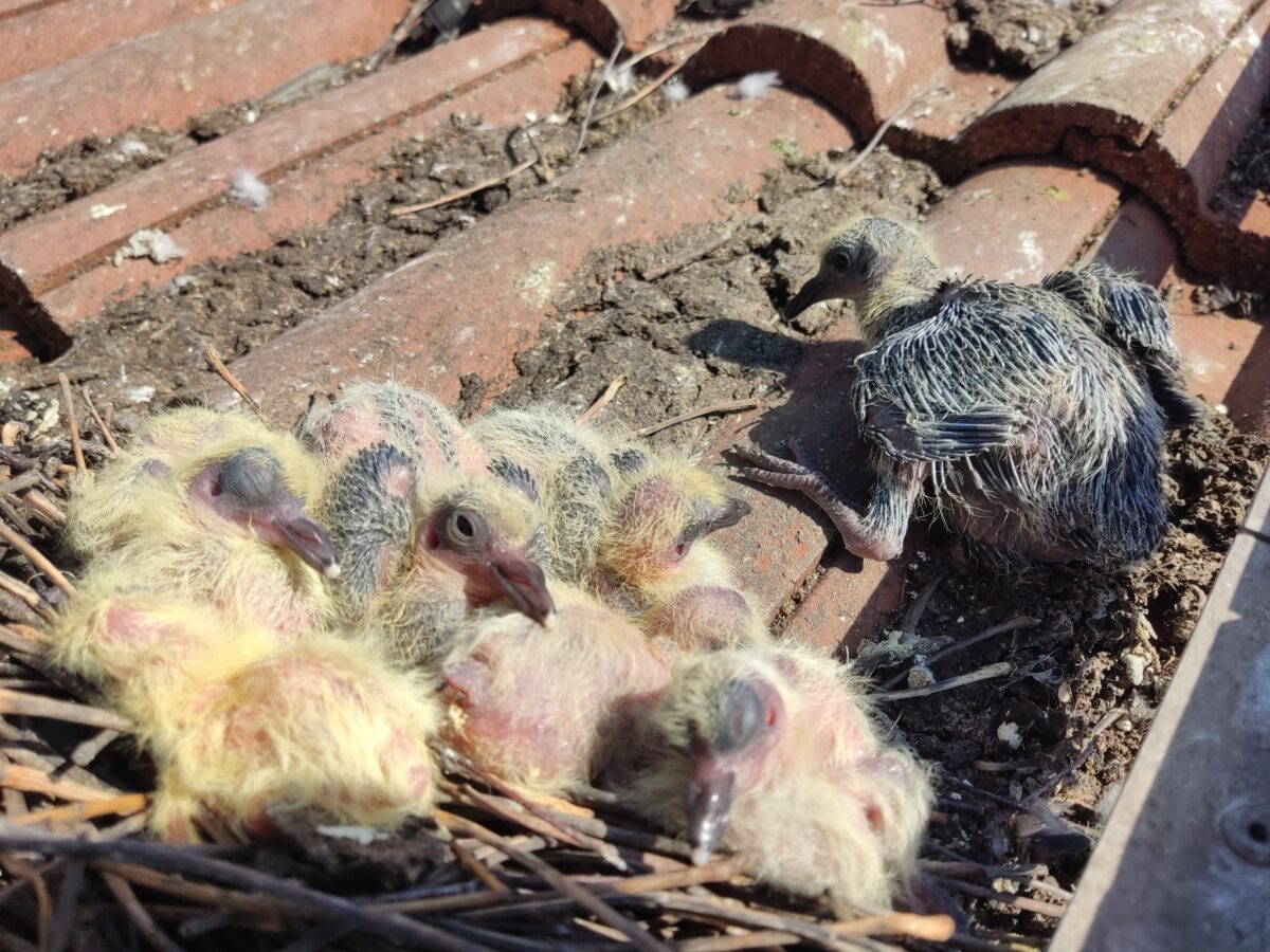 Ist das Kind in den Brunnen gefallen, wird es tatsächlich kompliziert. Die PV-Anlage darf nicht verschlossen werden, wenn bereits Tauben darunter nisten. Sie darf auch nicht einfach abgebaut werden, wie jüngst in der Frühlingsstraße geschehen. Sieben Küken saßen plötzlich an der frischen Luft. Das Problem ist nämlich: Stadttauben brüten ganzjährig. Bei mehreren Paaren gibt es praktisch kein Zeitfenster, in dem sich nicht Eier oder Küken unter den Modulen befinden. Erst nach sechs Wochen sind Küken flugfähig.