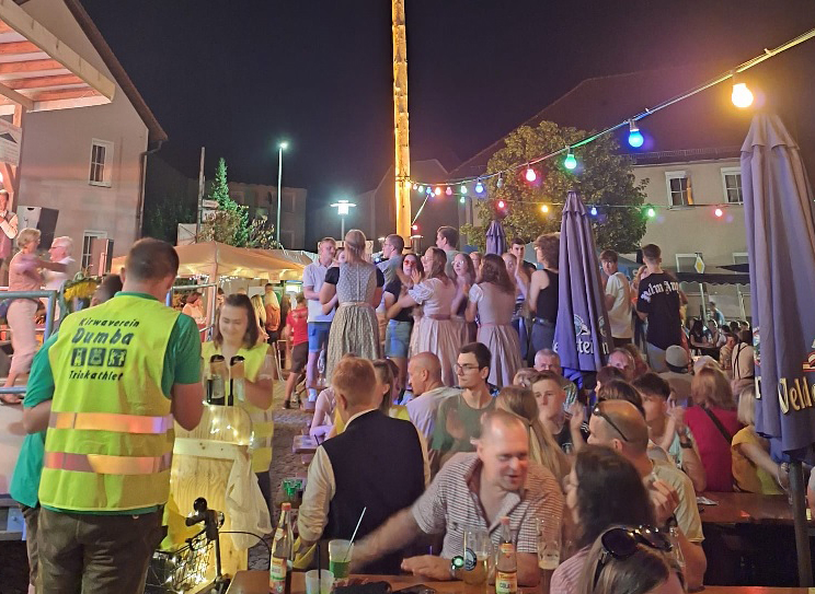 Die Pirker Blasmusik spielte zünftig auf und es dauerte nicht lange, bis die Gäste – überwiegend junge Leute im Trachtenoutfit – auf den Bänken standen und kräftig mitsangen und klatschten. Ob es die beliebten Bratwürste vom Grill, Schnitzelsandwiches oder die frisch gezapfte halbe Bier waren, all das wurde mit bestem Service vom Kirwaverein kredenzt.