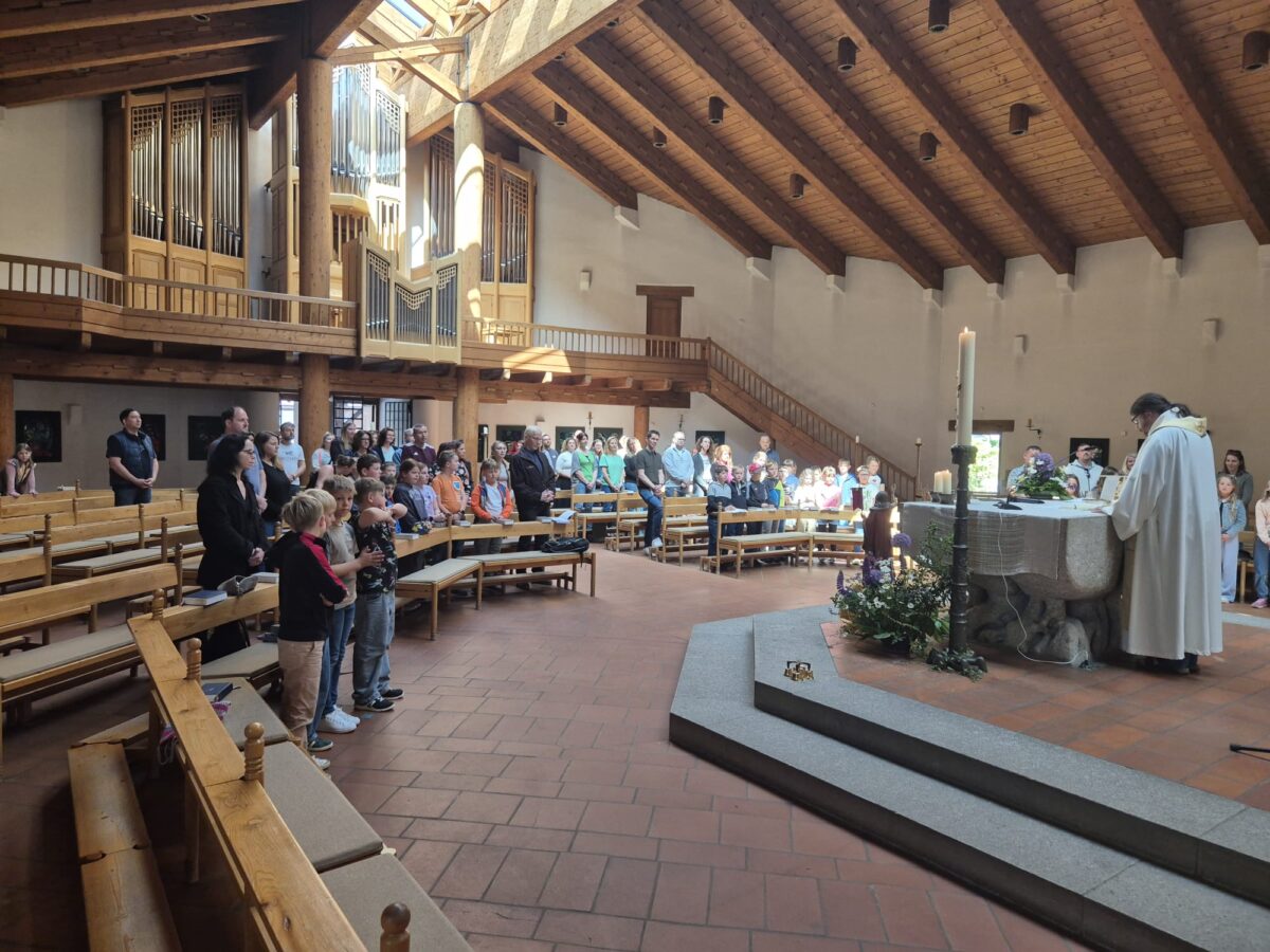 In Diesenbach angekommen, zelebrierte Pater Johannes in der modernen St. Johanniskirche einen kindgerechten Dankgottesdienst. Der Gottesdienst gab nicht nur den Kindern, sondern auch den Eltern die Möglichkeit, „unter beiderlei Gestalten zu kommunizieren“. Nach dem spirituellen Beginn genoss die Gruppe das Mittagessen in den Bürgerstuben von Diesenbach, bevor es weiter nach Regensburg ging.