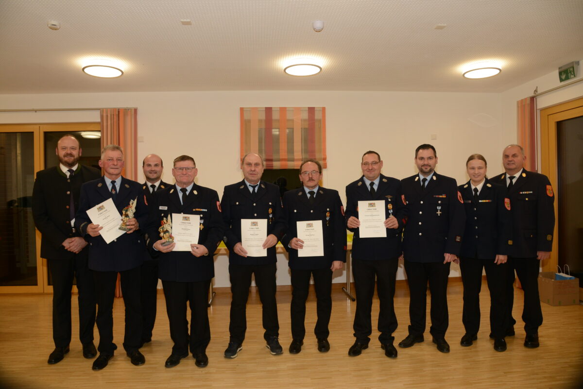 Für 40 Jahre im aktiven Dienst wurden Norbert Zeiler (Feuerwehr Neudorf) und Georg Rewitzer (Feuerwehr Luhe) ausgezeichnet, das Staatliche Ehrenzeichen in Silber für 25-jährigen aktiven Dienst ging an Thomas Schimetscheck (Feuerwehr Luhe).