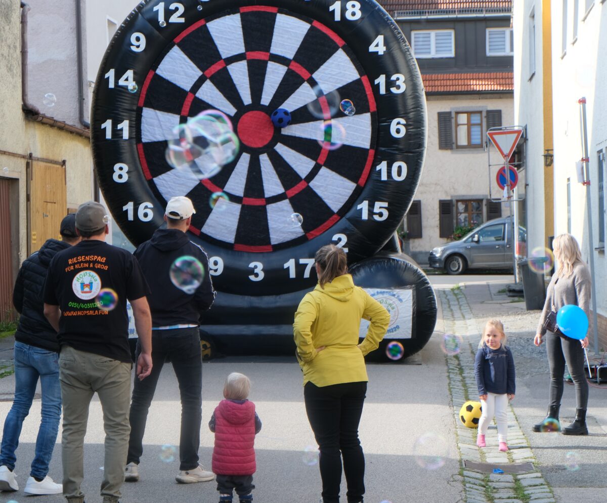 Spannung gab es für die Kinder mit den beiden Hüpfburgen und schließlich mit dem Gewinnspiel. Jedem Besucher der Entdeckungstour wurde eine Stempelkarte in die Hand gedrückt. Wer in den Geschäften und an den Verkaufsständen einen Stempel sammelte, konnte an der Verlosung teilnehmen. Verlost wurden Gewerbering-Wertmarken von 300 Euro, 200 Euro und 100 Euro.
