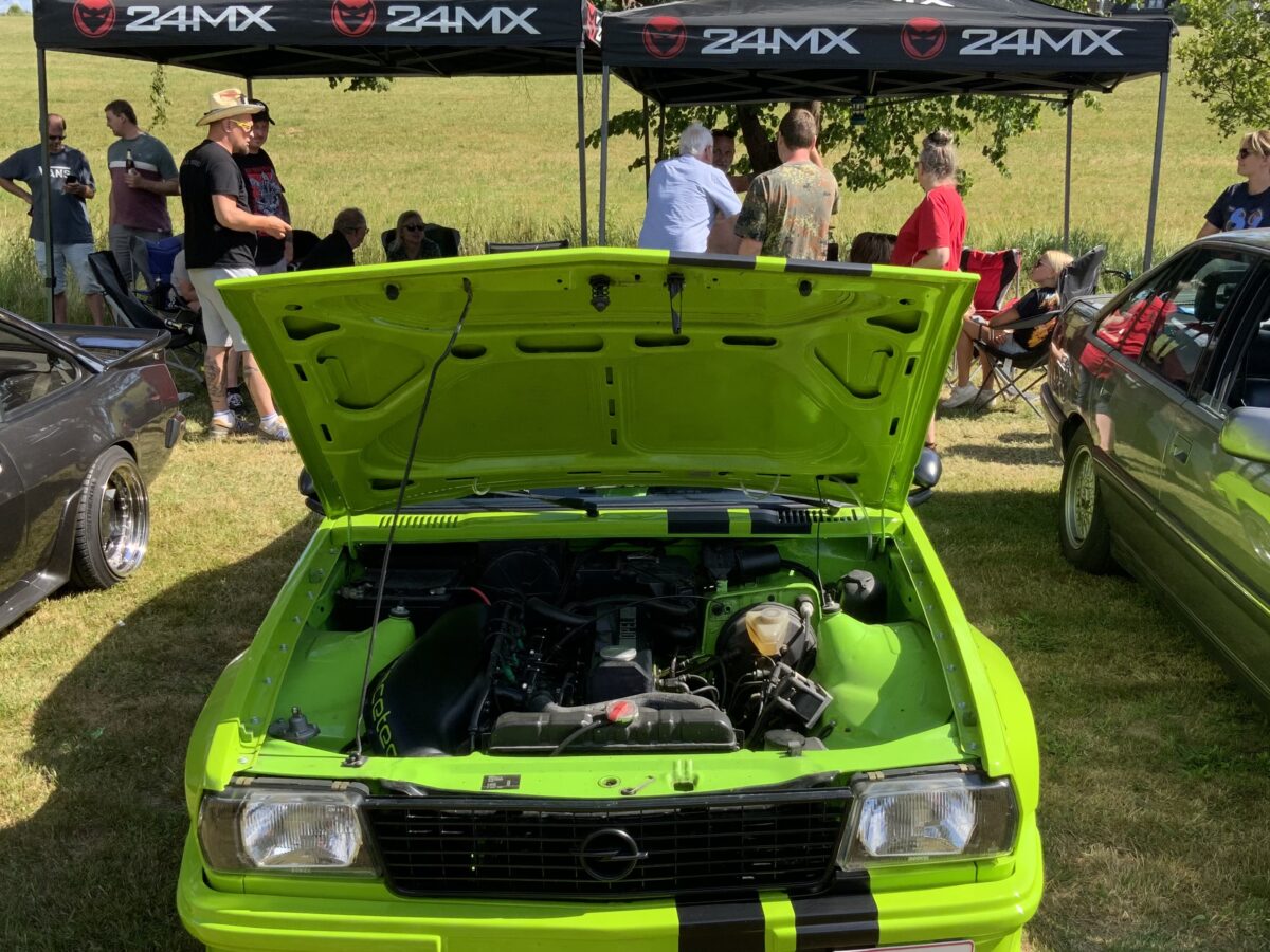 Die große Zeit des Opel-Tunings war wohl Ende der 1980er/Anfang der 1990er und viele der Teilnehmer haben ihre Leidenschaft bis in die Gegenwart konserviert, allerdings konnte man in Oberbibrach auch feststellen, dass auch jüngere Tuner große Freude an den Boliden aus Rüsselsheim entwickeln. Christian, um die 30, einer von mehreren Opelfreunden aus Lehen bei Krummennaab, gab großzügigen Einblick in seinen giftgrünen A-Manta von 1981: „Diese Autos sind sehr tuningfreundlich und man kann sehr gut alte und neue Technik verbinden.“ So steuert er die Elektrik über ein eingebautes Tablet und kann dort sämtliche Parameter auswählen und modifizieren. Ebenso befinden sich im Motor viele zeitgemäße Techniken und Sonderanfertigungen.
