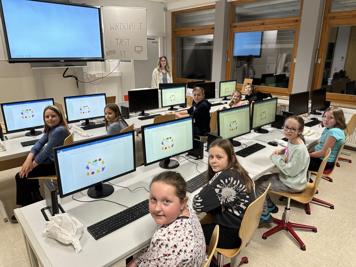 Die Veranstaltung endete mit einem praktischen Teil, bei dem die Kinder gemeinsam mit Fachoberlehrerin Ute Müller im Fachbereich Ernährung und Soziales gesunde Pausenspieße in der Schulküche herstellten. Parallel dazu gestaltete Fachlehreranwärterin Marie Zaus im Computerraum der Schule passende Tüten mit Aufklebern im Fachbereich Wirtschaft und Kommunikation.