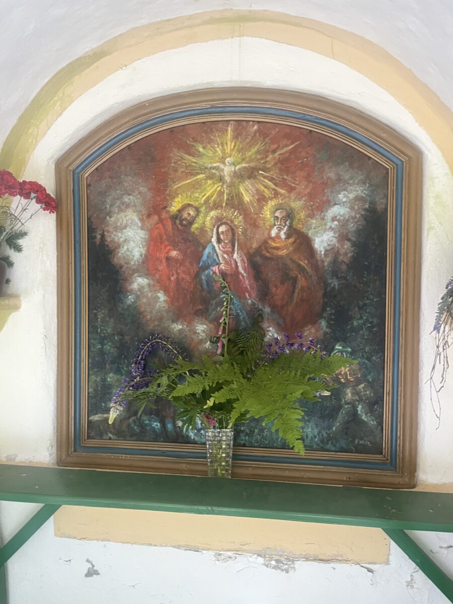 „Im 17. Jahrhundert ereignete sich auf diesem Platz die Darstellung, wo der alte Förster einen Wolf anschoss,welcher auf ihn losging und über diesen herfiel; aber in dem Augenblick der größten Gefahr durch Anrufung der Heiligen Dreifaltigkeit des Försters Sohn hinzukam, mit einemwohlgezielten Schuss den Wolf tötete und dadurch seinen Vater aus der Lebensgefahr errettete”. So lautete die ursprüngliche Inschrift zur Wolfsschützensage, die Szene der Wolfsschützenrettung ist auf dem Bild in der kleinen Kapelle zusehen. Sie liegt am Fuße der Schwarzen Berges an der Gemarkung am Erzhäusl und ist das letzte noch erhaltene Kirchlein auf dem gesamten Übungsplatz. Entlang der Allee aus 100 Linden, die zum 100jährigen Jubiläum des Bundesforstes gepflanzt wurden pilgerten die Vilsecker auch heuer wieder zur Wolfsschützenkapelle.
