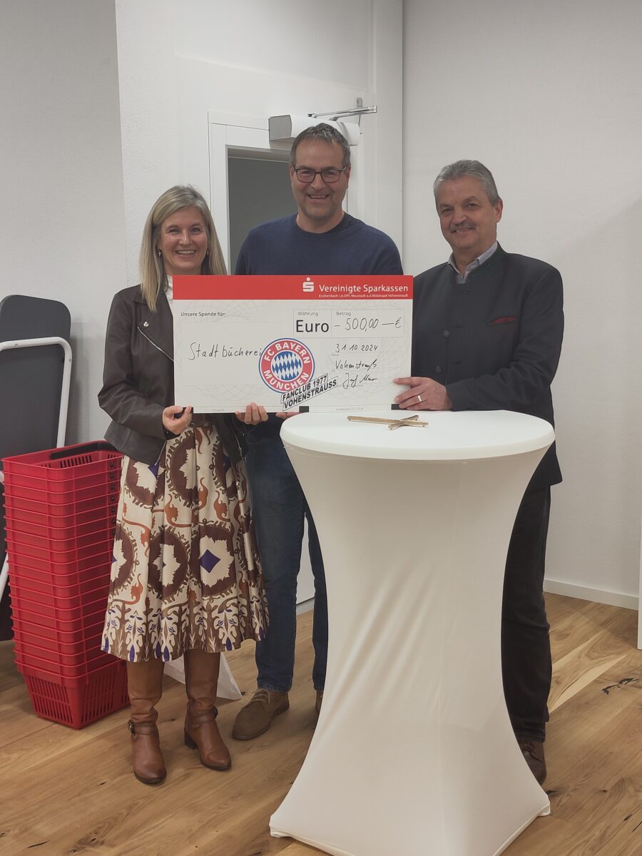 Im Rahmen der Eröffnungsfeier überreichte der erste Vorstand des Bayernfanclubs, Josef Maier, eine Spende in Höhe von 500 Euro an das Büchereiteam. Die Spende soll dazu beitragen, den Bestand der Bücherei mit neuen Büchern zu erweitern. Tanja Ries, die sich sehr über die Spende freute, bedankte sich herzlich: „Diese Unterstützung hilft uns, unser Angebot weiter auszubauen und noch mehr Menschen für das Lesen zu begeistern.“ Eine Eröffnungsveranstaltung für die Bevölkerung wird zeitnah stattfinden.