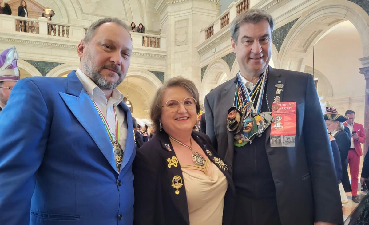 Daraufhin machte sich das bayerische Staatsoberhaupt auf den Weg, jeden Regionalverband mit seinen Abordnungen persönlich zu begrüßen. LVO-Präsident Troidl schüttelt Söder die Hand und erklärt: „Wir haben heute den Faschingsverein aus Vohenstrauß dabei. Das liegt an der tschechischen Grenze“. Troidls Erklärung unterbricht der Ministerpräsident schon fast, als er sagt, er kenne Vohenstrauß und wisse auch, wo das liegt. Nach einer kurzen Fotosession verleiht die amtierende Prinzessin Julia I. standesgemäß den Jahresorden des Vohenstraußer Faschingsverein an Söder, bevor dieser seine Runde – begleitet von weiteren Stücken der Günzburger Blaskapelle – fortsetzt.