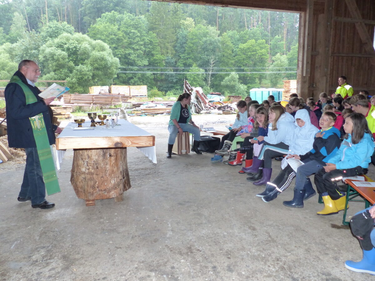 Betreut wurden sie von den Lagerleitern Alexander Eichinger, Oberministrant Markus Weig und Gemeindereferentin Theresa Glaser. Langeweile kam nie auf, wenn auch das Wetter teilweise nicht ganz so hochsommerlich war, denn neben Wanderungen wie zum Hochspeicher, der Besichtigung des Wasserkraftwerks in Reisach, Lagerfeuer, Basteln und vieles mehr waren die Jugendlichen voll beschäftigt im großen Mannschaftszelt. Der Abschluss des Ferienaufenthaltes war ein Gottesdienst, der dankenswerterweise wegen des starken Regens in der Scheune von Georg Stahl stattfinden konnte.