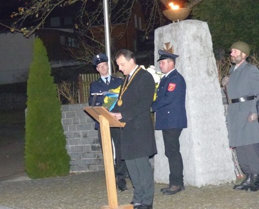 Kranzniederlegung, Gebete und Rede zum Volkstrauertag durch das Gemeindeoberhaupt fanden am Mahnmal statt. Mit drei Böllerschüssen, die Böllerschütze Walter Imbs abfeuerte, endet die Gedenkfeier am Leuchtenberger Kriegerdenkmal.