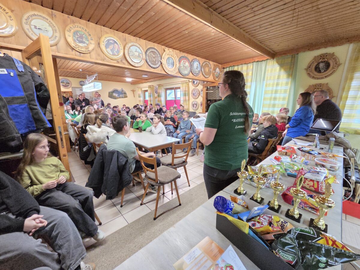 Der zweite Schützenmeister Johannes Kleber hieß zur Preisverleihung zahlreiche Ehrengäste willkommen, darunter die 2. Gauschützenmeisterin Claudia Kraus, den 1. Gaujugendleiter Maximilian Wallmeyer sowie den 1. Bezirksjugendleiter Valentin Kellner. Ein besonderer Dank galt Jugendleiterin Julia Lukas und Sportleiterin Lena Kellner für die reibungslose Organisation des Wettbewerbs.
