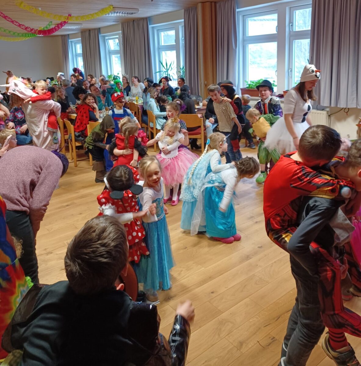 Nach zwei Jahren Coronapause feierten rund 50 Kinder samt Eltern ausgelassen wieder Fasching im Theresienheim. Neben Kaffee, Kuchen und einer Menge Süßigkeiten, sorgte das Team der TSV Vereinsjugend um die Vorsitzenden Tabea Meiler und Luisa Riedl für einen kurzweiligen Nachmittag. Das Unterhaltungsprogramm reichte vom Zeitungstanz, über die Reise nach Jerusalem, bis hin zum Limbo. Höhepunkt war eine große Polonaise, welche sich durch das ganze Gebäude schlängelte.