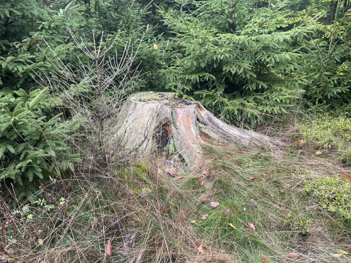 Bahnmüller appelliert an private Waldbesitzer, ihren Maschinenpark nicht gar so ausgiebig zu nutzen. Manche mulchen zweimal im Jahr – weniger wäre mehr. Auch Totholz sollte liegen bleiben: “Jeder Stamm Totholz ist ein Segen.” Er zeigt einen alten Stumpen, der zuletzt Winterquartier mehrere Kreuzottern war.