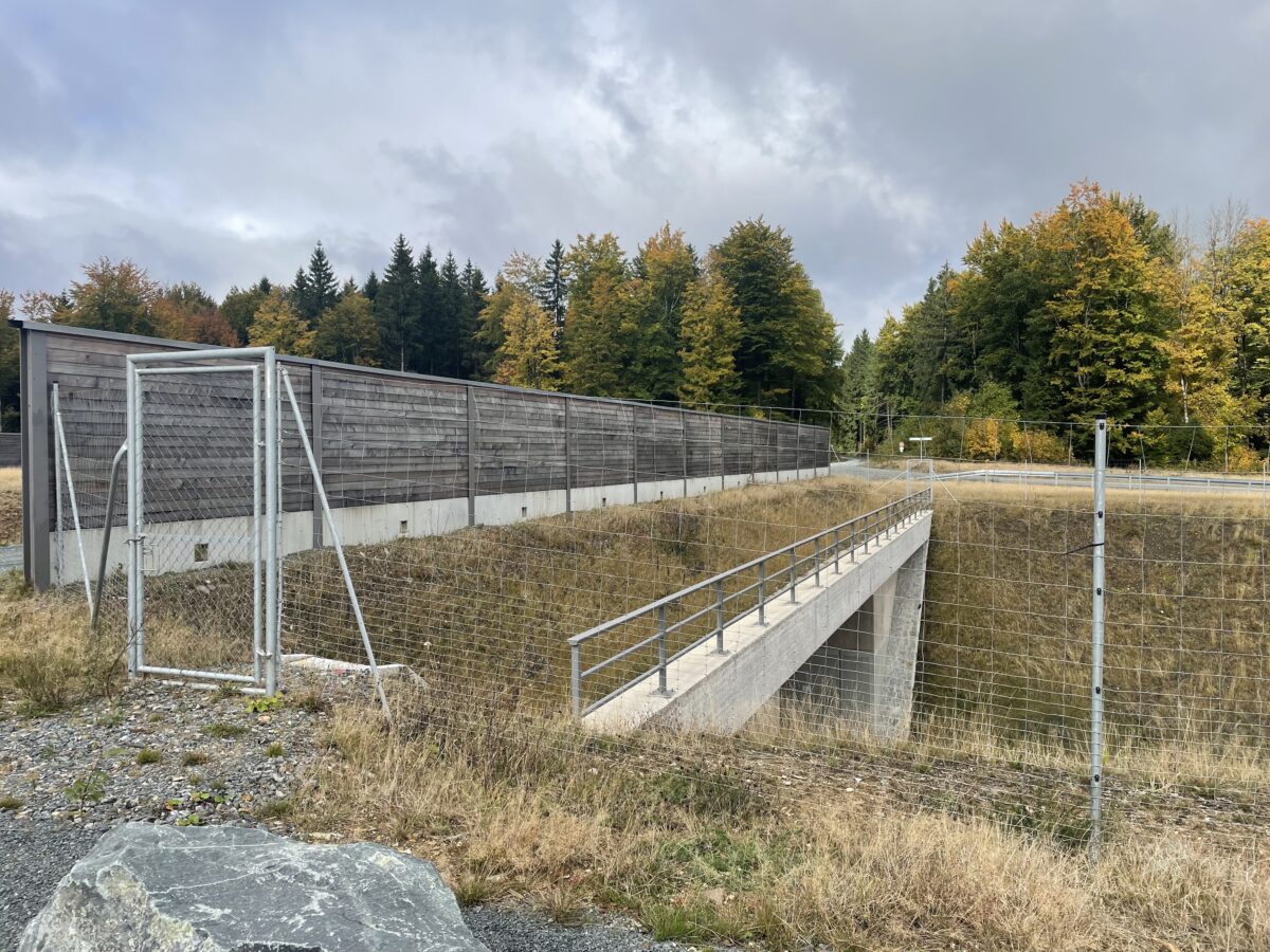 Was tun? Ein paar mehr Querungen wären schon sinnvoll gewesen, sagt Biologe Schmiedinger mit Blick auf die B299. Auch die “grüne Brücke”, die beim Wanderparkplatz über die Bundesstraße führt, müsse dringend begrünt werden: “Sonst wird das nichts.” Inzwischen stellten hier Truckerfahrer ihre Sattelschlepper für die Nacht ab.