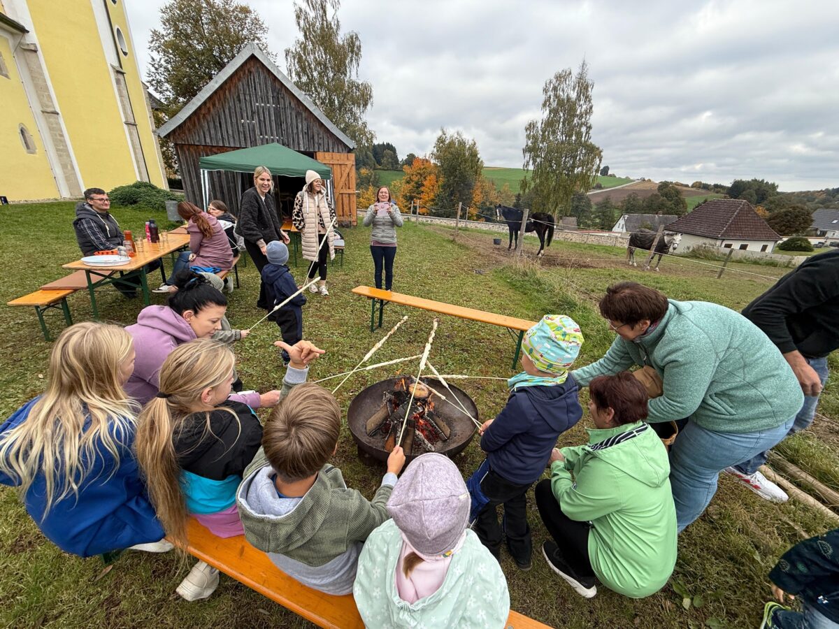 Zur Stärkung gab es danach Stockbrot für die Kinder, natürlich eigenhändig gegrillt, selbstgebackenen Apfelkuchen und Kaffee für die Besucher. Bei herbstlichem Wetter und bester Stimmung wurde viel gelacht, probiert und gefachsimpelt; eine rundum gelungene Aktion, die Lust auf Wiederholung macht.