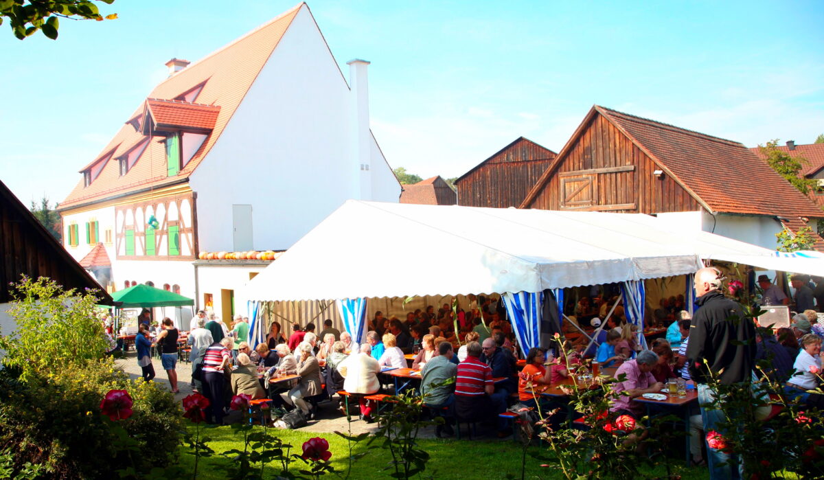Die inzwischen 22. Auflage des Hoffestes der Familie Beutner am Sonntag, den 28. September, lockt in die Etzenrichter Ortsmitte, in den markanten, mit Fachwerk im fränkischen Stil verzierten und 1909 erbauten Bauernhof. Zur Feiermeile zählen die umliegenden Hof- und Freiflächen sowie der Bauerngarten. Schatten und Schutz liefert das aufgebaute Festzelt der örtlichen Zeltgemeinschaft.