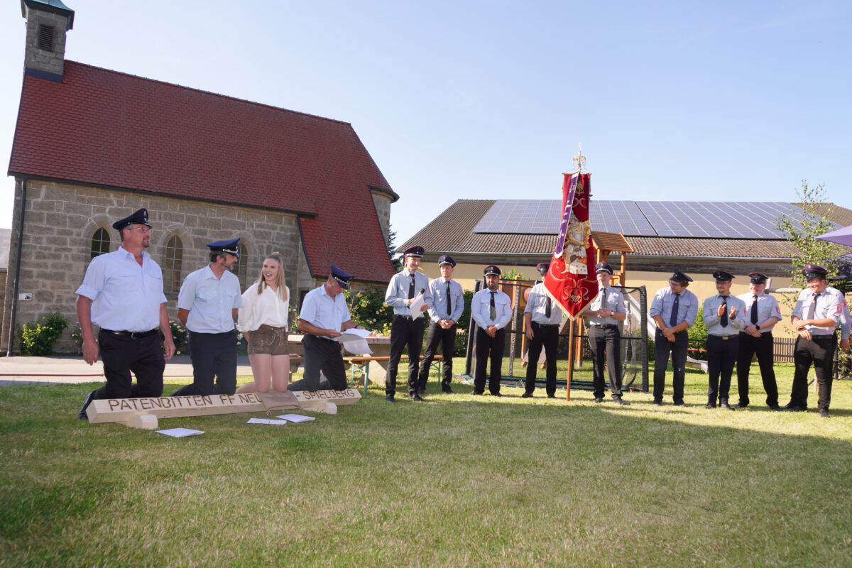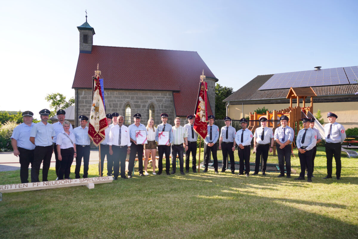 Der Neudorfer Vorsitzende Andreas Götz hatte natürlich seinen gesamten Führungsstab mit Stellvertreterin Kerstin Zetzl und die beiden Kommandanten Alexander Pilfusek, Jürgen Schiller und Festleiter Markus Zetzl dabei.